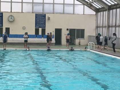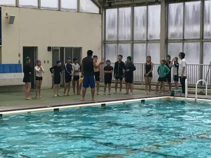 高学年で今年初めてのプールの授業を行いました。少し肌寒かったですが、初泳ぎを子ども達は楽しみました。