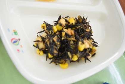 鉄人サラダは鉄分の多いひじきと大豆をカレー粉で和えました。カレー味になると子供たちも進んで食べてくれます。