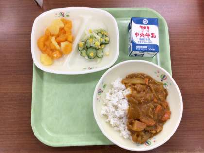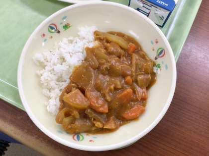 今日はカレーライスです。昨日の夕方や、今日の朝に子ども達が「カレー楽しみ!」と話していました。いっぱい食べて、元気に過ごして欲しいなと思います。