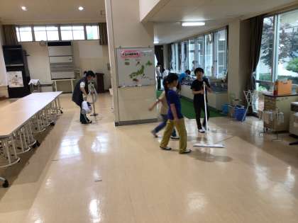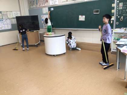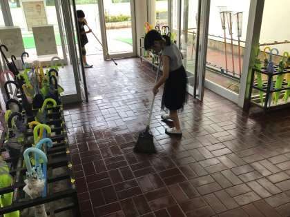 月曜日、水曜日、金曜日は縦割り班で、分担された場所をきれいに掃除しています。