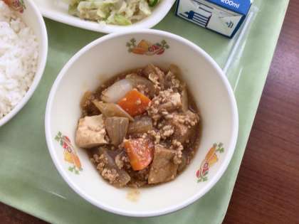 今日の生揚げのみそ炒め煮はごはんによく合うおかずです。生揚げとたっぷりの野菜が入っているので、栄養も満点です。残さず食べてくれるといいなと思います。