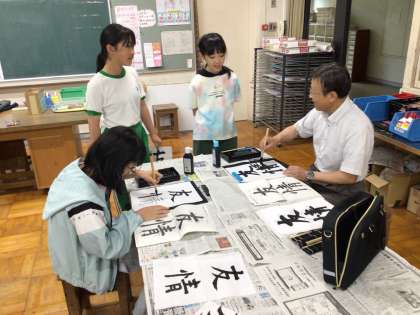 「友情」という字を、繰り返し練習しました。少しずつ上手く書けるようになりました。