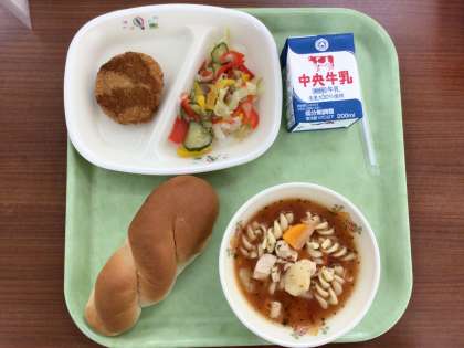 ツイストパン キャベツ入りミンチカツ パプリカサラダ ミネストローネ