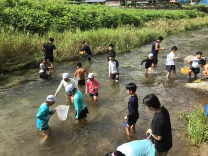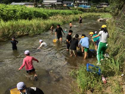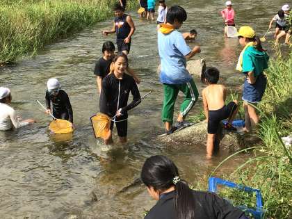 暑い中、川の水は冷たく気持ちよく活動することができました。