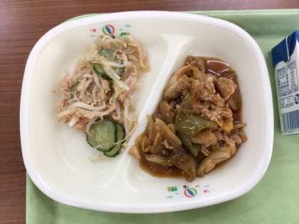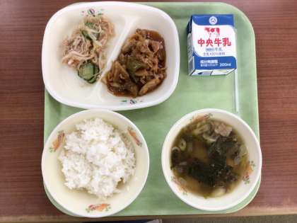 今日は豊田市産の白菜を使用したキムチで作った「豚肉とキムチのみそ炒め」です。簡単に言うとホイコーローにキムチを入れた料理で、ごはんが進む味付けです。