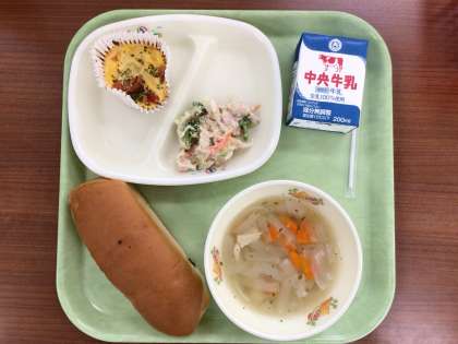 レーズンロールパン トマトのキッシュ ツナサラダ オニオンスープ