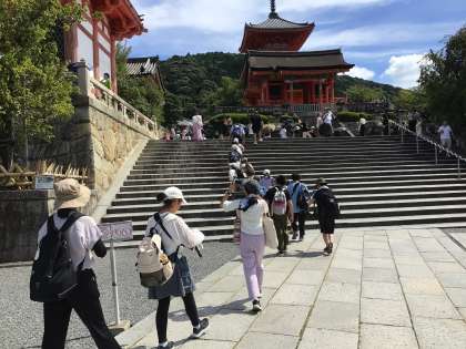 清水寺を参拝しました。清水の舞台から見る景色は素晴らしく、釘を一切使わずに作られている技術にも驚かされました。