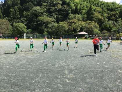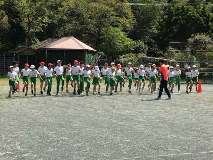 速く走るポイントを教えてもらいました。最後は川端選手と競走することで、オリンピック選手の凄さを間近で感じることができました。