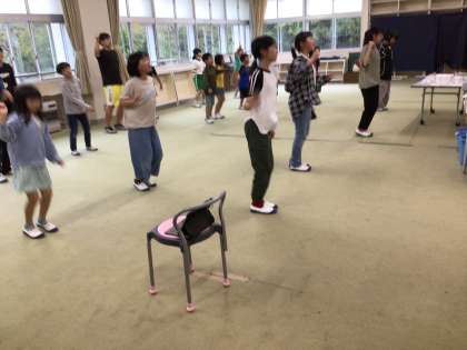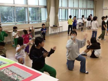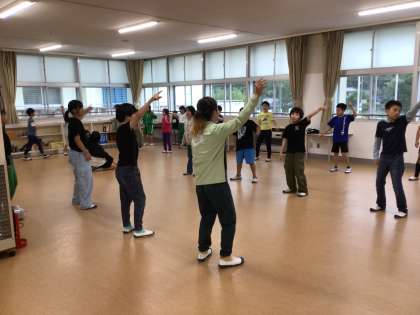 6年生の子ども達の呼びかけで、お昼のふれあいタイムに応援合戦のダンス練習をしています。6年生がリーダーシップをとって頑張っています。