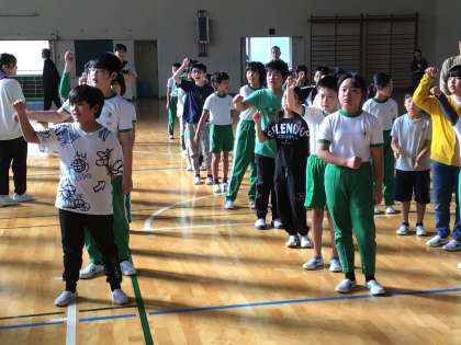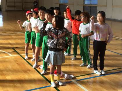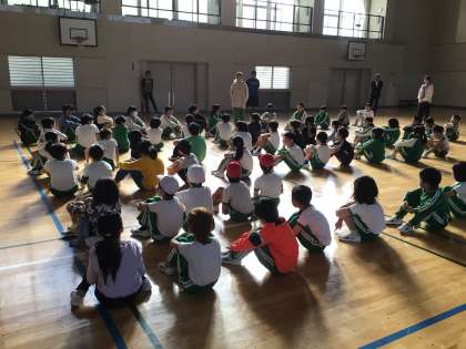 運動会に向けて、全校で運動会の歌の練習をしました。笑顔で大きな声で、目線を上げて歌うことを確認しました。