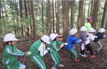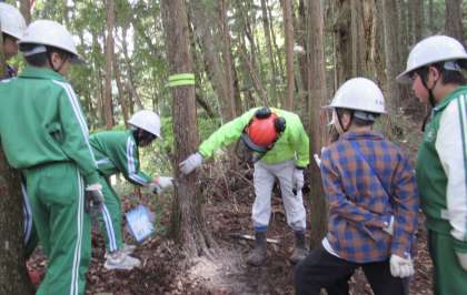 森の健康診断や間伐体験を行い、森を守っていくことの大変さを学びました。