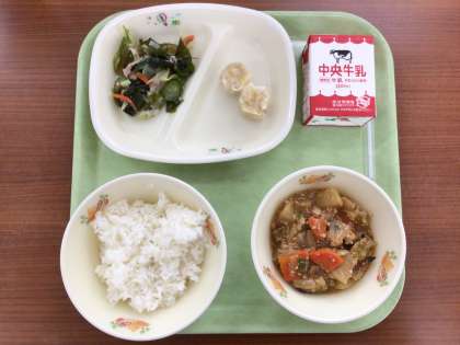 ごはん コーンしゅうまい 海藻サラダ 麻婆大根