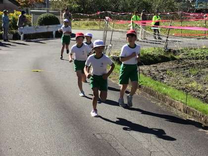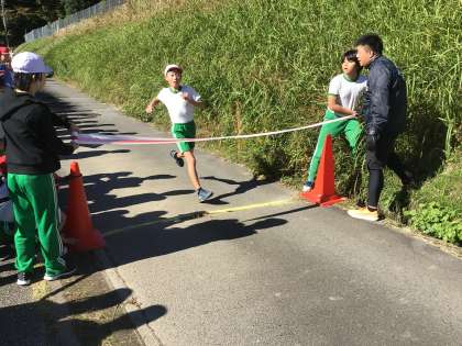 1周600mのコースを2周半(1500m)走りました。勝負に負けて悔しくて涙を流す子どももいました。どの子も一生懸命に走りました。