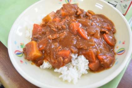 今日はハヤシライスです。トマトピューレーとケチャップをたっぷり入れて、トマトの風味が感じられるようにしました。