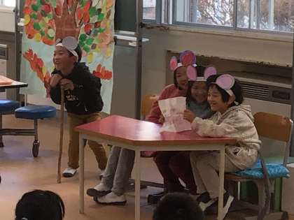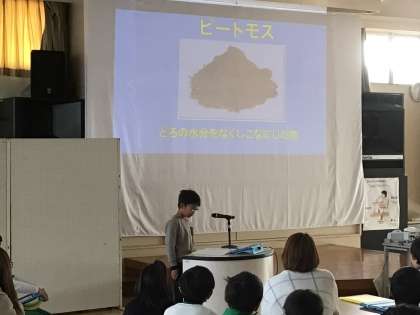 各学年、今まで学んできたことを他学年や保護者の皆様に発表しました。ブルーベリーの栽培や森林学習など、総合的な学習の時間に学んだことを中心に聞いてもらいました。