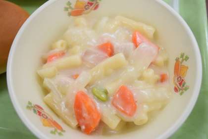 【今日の献立】 ツイストパン オムレツ ビーンズサラダ マカロニのクリーム煮