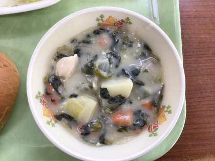 今日は冬が旬のほうれん草をたっぷり使用したクリームシチューです。ほうれん草はビタミンやカロテンが豊富で、体の抵抗力を高め、風邪を予防するのにぴったりです。