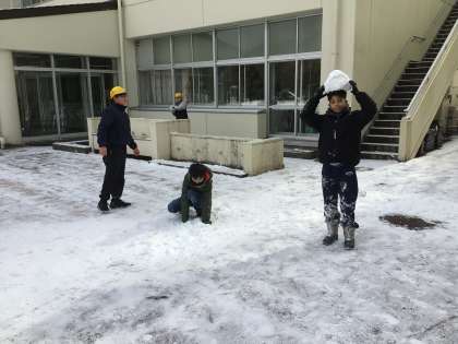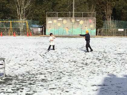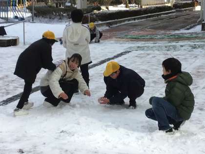 5年生の子どもたちが、校庭に積もった雪で、雪合戦をしたり、雪遊びをしたりして楽しみました。