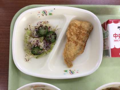 ごはん にぎすフライ ゆかりあえ すき焼き風煮