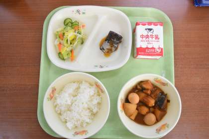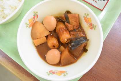 今日は愛知県のソウルフードである「みそ煮込みおでん」にしました。さといも、だいこんなどの大きな具がゴロゴロと入っていて食べ応えがあります。