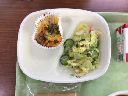 今日は手作りキッシュです。カップの中にマッシュポテトをしき、ベーコン、たまねぎを入れて、卵液を流し込み、オーブンで焼きました。よい焼き色で焼けたのでよかったなと思います。