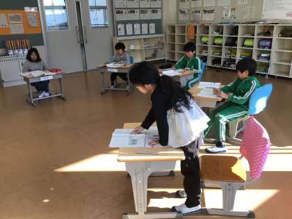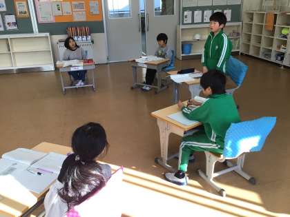 「あなのやくわり」を読んで、始め、なか、おわりの3つにわけました。その後、文章の中の「問いの文」について考えました。