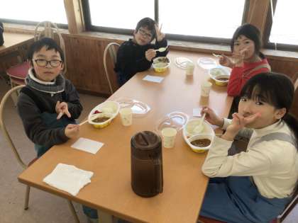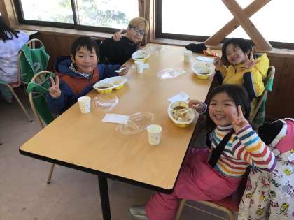 お昼ごはんはカレーライス。美味しいので、みんなおかわりしていっぱい食べました。