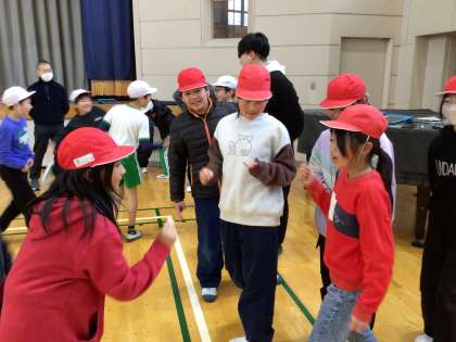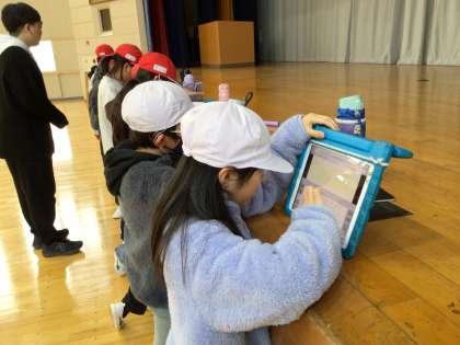 4年生が、6年生を送る会に向けて、全校で行うゲームを考えました。実際にゲームをやってみて、課題について振り返りました。これから、細かいルールも確認して、みんなが楽しむことができるゲームを企画します。