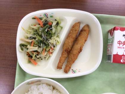 今日はししゃもフライを紹介します。ししゃもは丸ごと食べることができる小魚で、カルシウムを摂取するのにぴったりの食品です。進んで食べてほしい食品ですが、丸ごとの魚を苦手としている子ども達も多いので、今回はレモンしょうゆのたれをかけて食べやすくしました。残さず食べることができるといいなと思います。