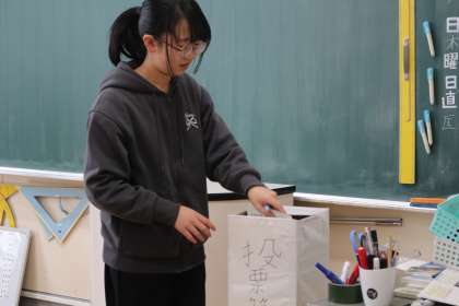 6年生が社会科の授業で、選挙について学びました。それを生かして自分たちの卒業祝い給食の、献立総選挙を行いました。給食係が選挙管理員を務め、一人ひとり投票箱に票を入れました。発表の瞬間には様々な声が上がり、卒業お祝い給食がさらに楽しみになりました。
