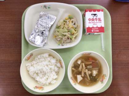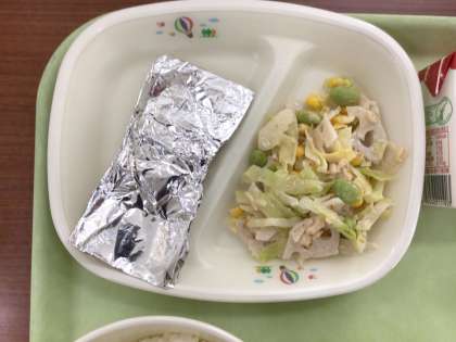 ごはん たらの銀紙焼き れんこんサラダ かみなり汁