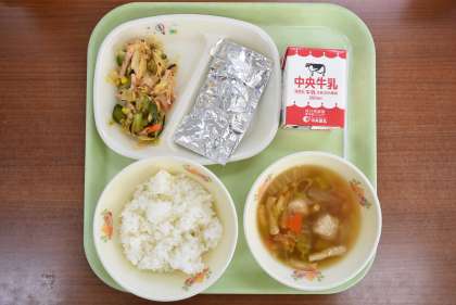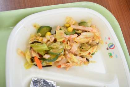 今日は1年生の国語の教科書に掲載されている「さらだでげんき」より「りっちゃんの元気サラダ」を作りました。サラダを食べて、寒さに負けず、元気に過ごしてほしいと思います。