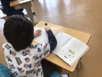 国語科「すいせんのラッパ」の音読発表をしました。カエルの様子を想像しながら発表しました。