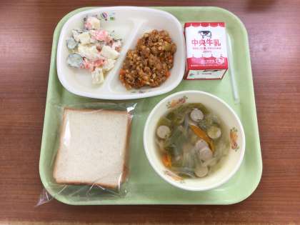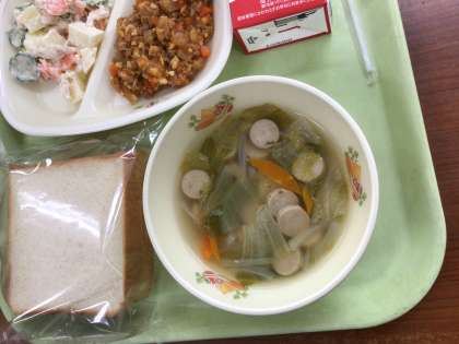 今日の給食は、レタスをたっぷり使ったレタススープが登場しました。