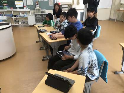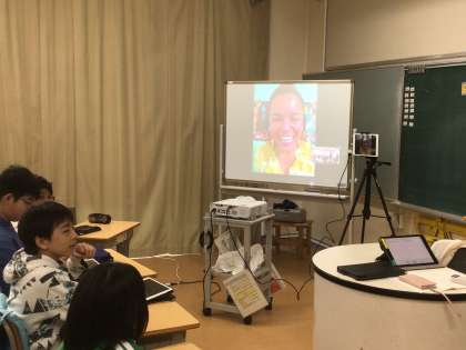 昨年度までALTとしてお世話になり、現在アメリカにみえるジョニ先生とオンラインで授業をしました。子どもたちは笑顔いっぱいで会話を楽しんでいました。