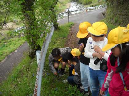 生活科で春をさがしに出かけました。出会った方に釣ったばかりの魚を見せてもらったり、さまざまな草花を見つけたりしました。