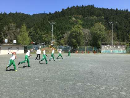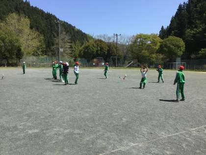 投げ方の学習をしていました。遠くまでとばすためにリズムをとったり助走をつけたりして練習しました。