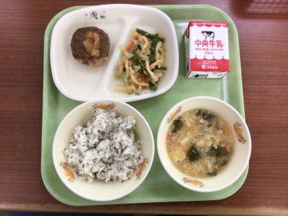 今日の給食は、八十八夜にちなんでお茶を使ったメニューになっています。