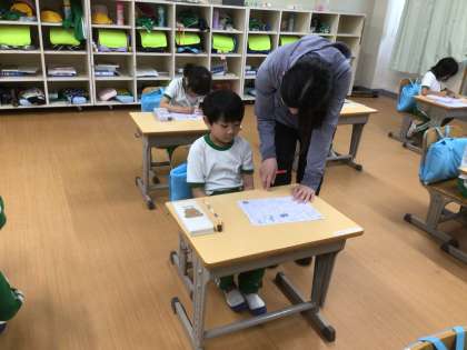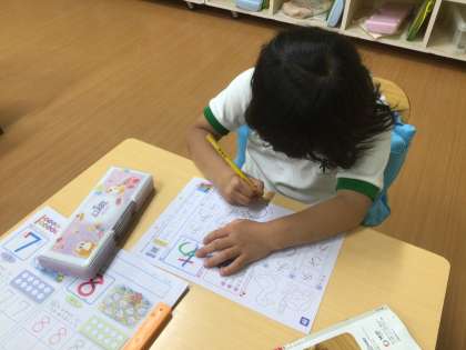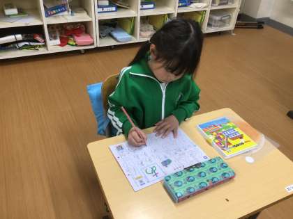 ひらがなの学習です。「あ」の文字をていねいに練習していました。