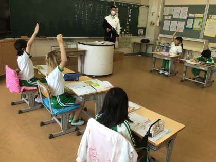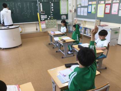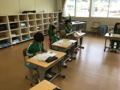 道徳科の時間です。登場人物の気持ちについての問いに、たくさん手があがっていました。