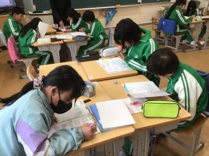 算数の単元のまとめの学習でした。各自のペースで練習問題を進めていました。
