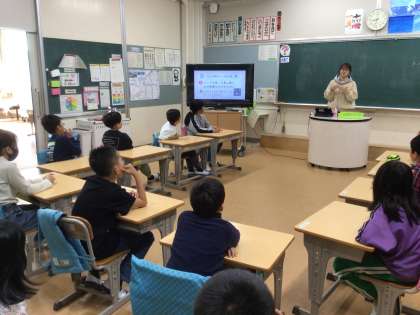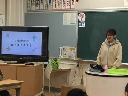 保健室の先生から、来週から始まるフッ化物洗口について目的や方法などのお話を聞きました。