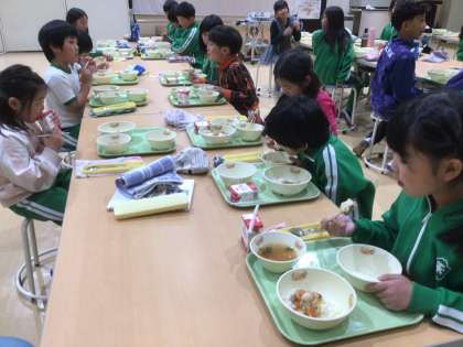 楽しくておいしい給食の時間の様子です。