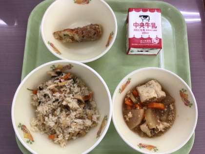 今日の給食は、今の時期が旬の たけのこ と お茶 を使った献立です。