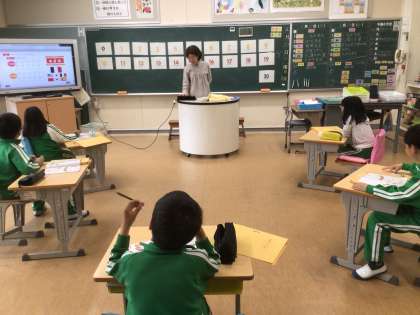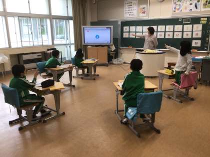 外国語活動です。20までの数字を英語で発音しました。英語でのじゃんけんも楽しんでいました。