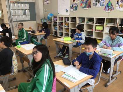 社会科の時間です。高い土地に住む人々の工夫についてキャベツの生産をもとにして考えていました。