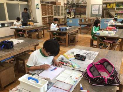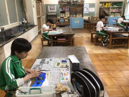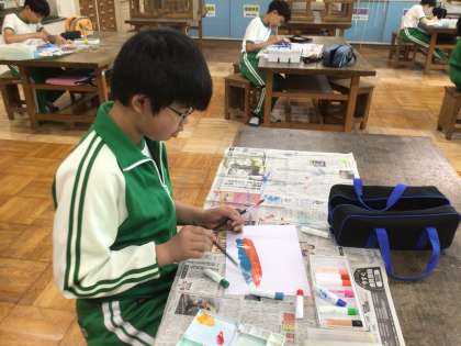 図工の「音の絵」の単元です。音を聞いて感じたことを絵に表していました。
