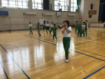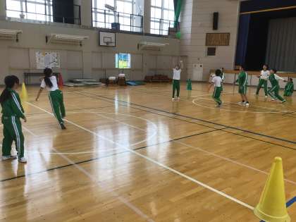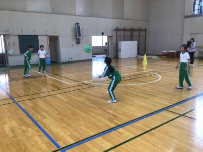 月に一度のお楽しみ会の時間でした。チームを替えながらワンバウンドドッジボールで楽しんでいました。