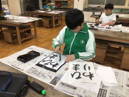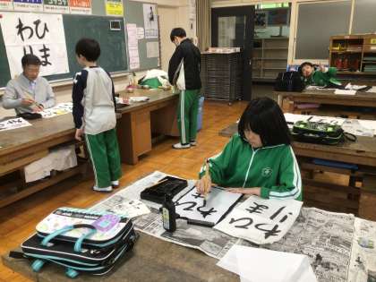 書写の時間です。ひらがなで「ひまわり」の字を練習しました。