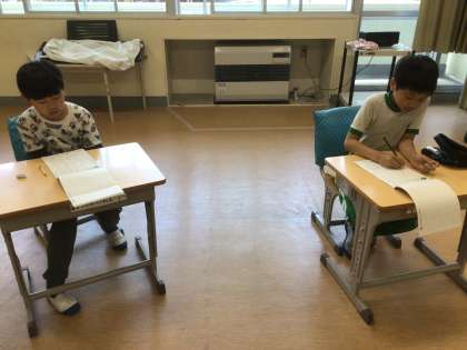 ショートテストの最中でした。問題数は少ないですが、じっくりと考えていました。